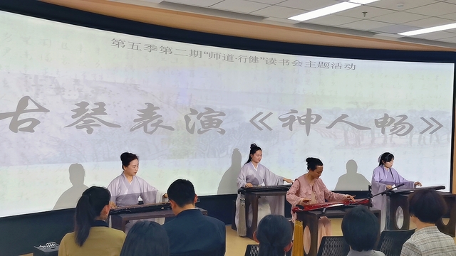 4 月 27 日下午,中国矿业大学图书馆共享空间内,一场穿越千年的文化雅集悄然上演 ——古琴声悠,点茶留香,插画生趣,焚香静气,宋代 “四般雅事” 在此尽数呈现。在清泠琴韵与袅袅茶香交织的古典意境中,五十余名教职工跟随我校苏轼研究院院长管仁福教授沉浸式踏入苏轼主政徐州时的诗文世界,揭开第五季第二期“师道・行健” 读书会的序幕。