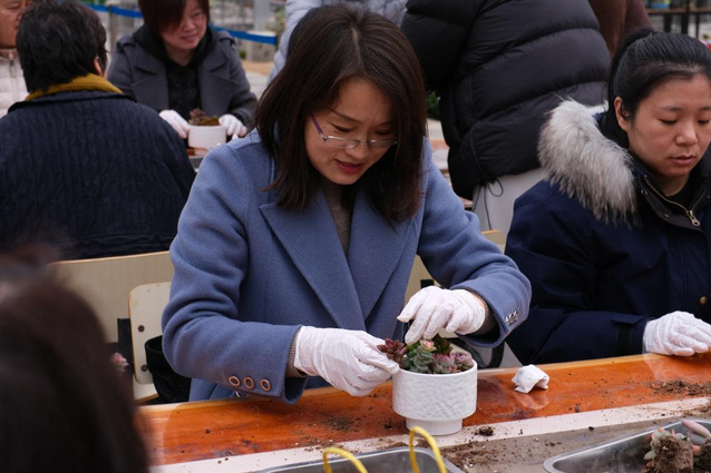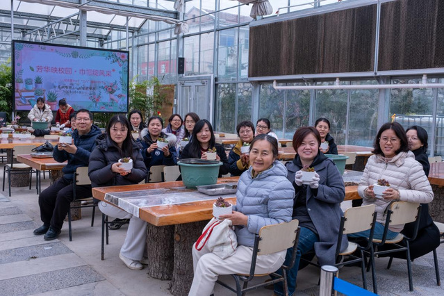 活动中,女教师们挑选了心仪的多肉品种,在园艺老师的指导下,将其移植到花盆中。通过亲自动手大家不仅体验了创建绿色环境的乐趣,而且学习了多肉植物的移植和养护知识。实践基地里,老师们相互交流经验、分享心得,不时传出阵阵欢声笑语。